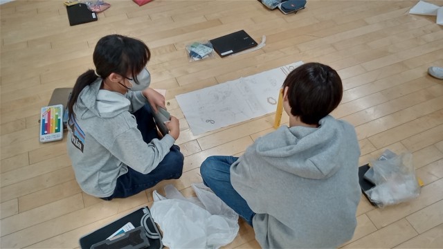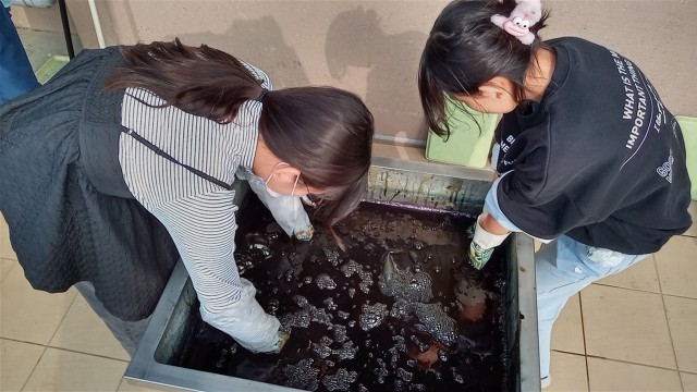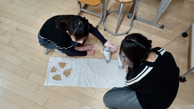 本日、6年生残り2学級の藍染を行いました。本日もインディゴ・ボランティアの皆様のご協力をいただき、子供たちは作業をしています。