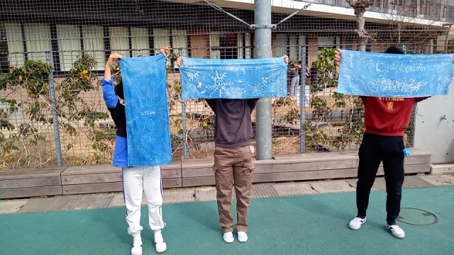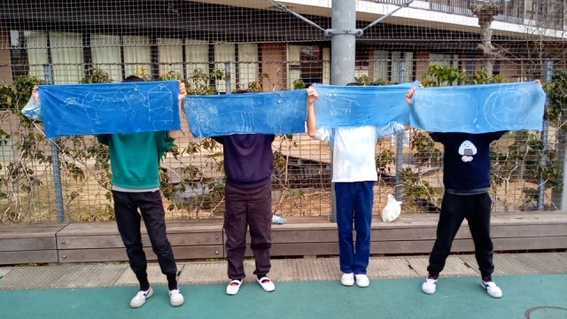 6年生の藍染の手拭いは、しばらく玄関につるして飾ってあります。ぜひご参観ください。また、インディゴ・ボランティアの皆様、ありがとうございました。