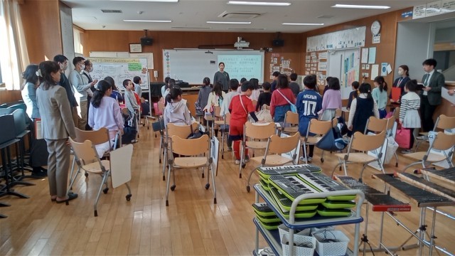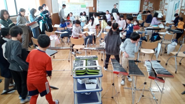 曲想によって、どのように演奏するかをみんなで考え、演奏しました。子供たちは、とても楽しんで演奏していました。