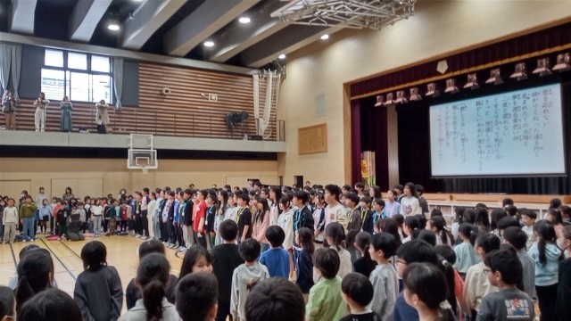 全児童で合唱しました。全校児童で歌うのは、今日で最後です。