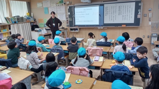 最後に池袋本町小学校の校歌を一緒に歌いました。園児たちはとても楽しんだようです。4月から元気に学校に来てください。