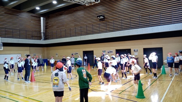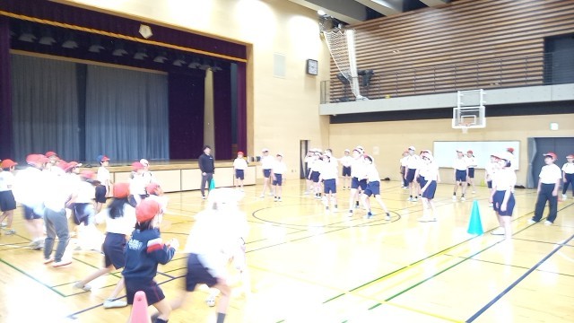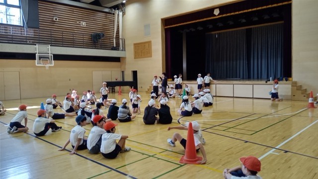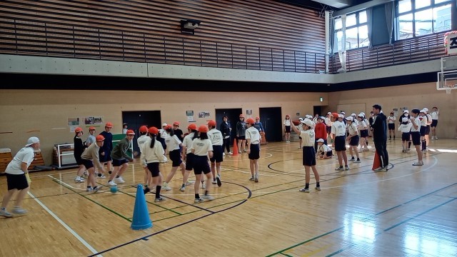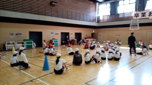 体育館では、5年生対6年生の学級対抗ドッチボールが行われていました。