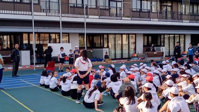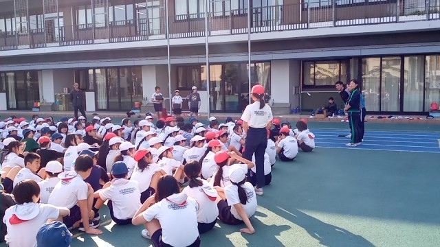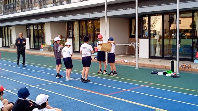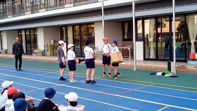 閉会式では、5・6年生それぞれ、今日の感想を述べていました。本日は5年生を中心に会を進行していました。最後に6年生がサプライズとして、藍染めのたすきを5年生にプレゼントしていました。
