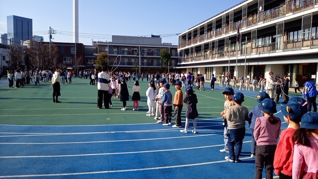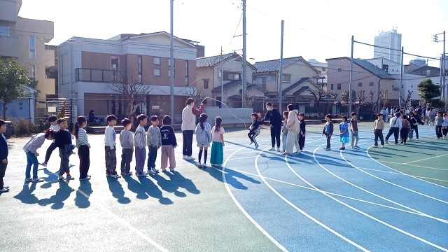 今朝は、1・3・5年生の今年度最後の体育朝会です。長なわ跳びにチャレンジしました。目標に向かって、みんなで力を合わせたくさん跳んでいます。