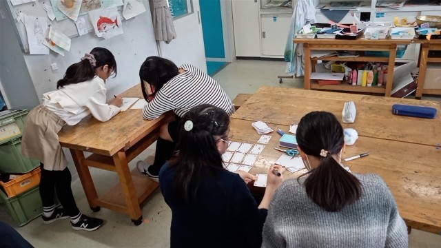 6年生の図工は全ての単元が終了したので、自由工作をしていました。トランプづくりや立体工作など、思い思いの作品ができていっています。