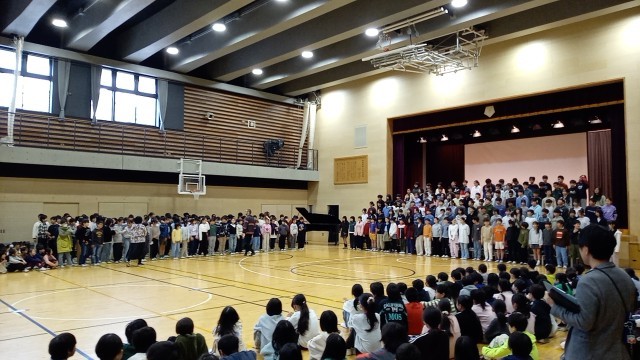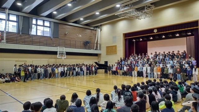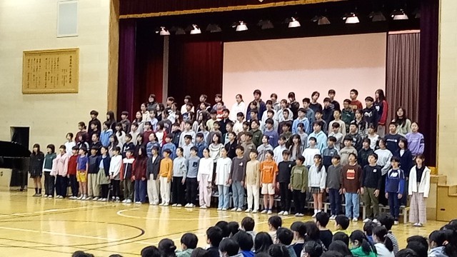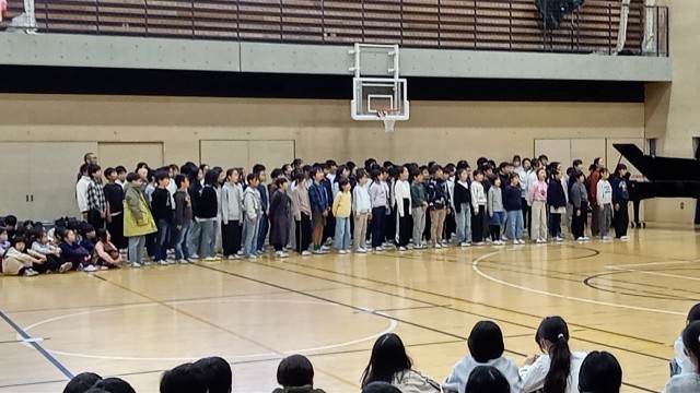今朝は今年度最後の音楽朝会でした。5・6年生の卒業式で歌う合唱を他学年に披露しました歌声の重なりがとてもきれいでした。卒業式当日も、きっとすてきな歌声が響き渡るでしょう。