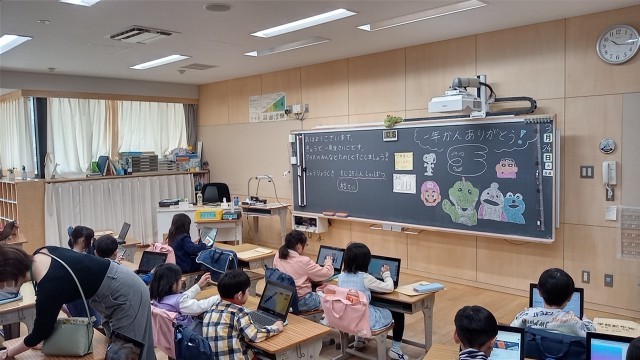 今年度最後の日、低学年の各クラスは、お楽しみ会をしたり、お世話になった担任の先生に手紙を書いたり、大掃除をしたりなど、いろいろでした。
