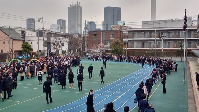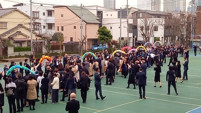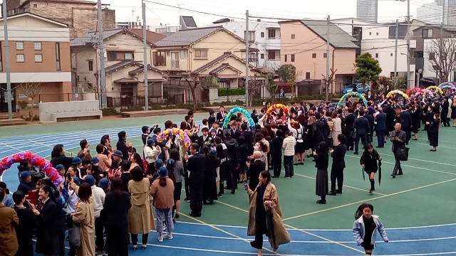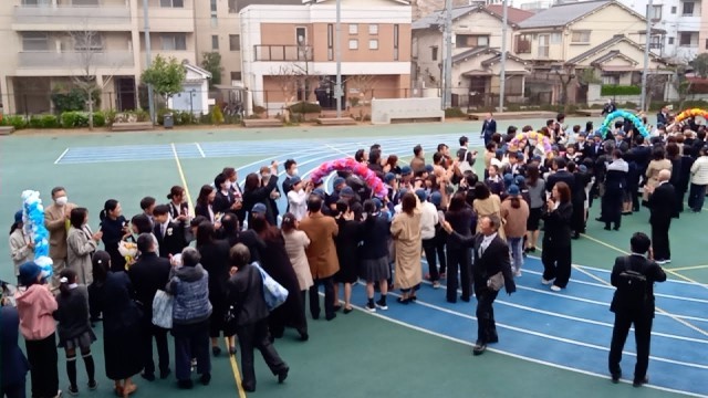 5年生、教職員、保護者、そして池袋中学校の教職員に見送られながら、卒業生は池袋本町小学校を巣立っていきました。