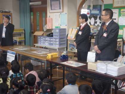 下板橋駅の柳駅長さんを始め、成増駅の駅長さんほか多数の皆さんに来校いただきました。全校朝会での話しに引き続き、2年生全員に鉄道の仕事と安全についてお話し頂きました。資料や模型を使ってとても学びの多い授業でした。ありがとうございました。