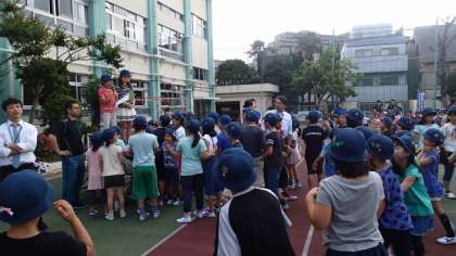 今回は、「先生〇×クイズ集会」でした。問題をよく聞き、正解だと思う方に移動します。新しくいらっしゃった先生を紹介するクイズだったので、それぞれの先生について、もっと詳しく知ることができました。