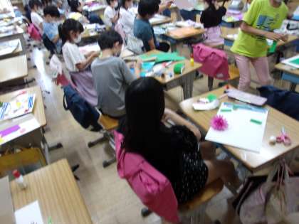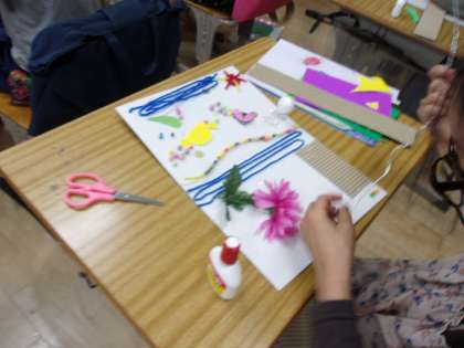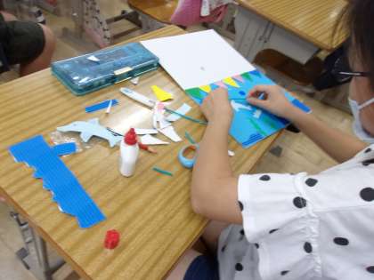 図工の時間に、磁石を利用した工作活動を行っています。台紙の表裏で磁石を使って挟むことで、自由に作品を変化させることもできるようです。