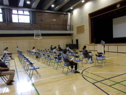 2時間目に道徳授業地区公開講座の意見交換会を行いました。本日のテーマは情報モラルです。テーマに関するDVDの視聴の後、保護者と教員で小グループで意見交換を行いました。とても有意義な話し合いになったと思います。