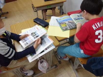 3年生の総合的な学習の時間では、「交通安全プロジェクト」が進められています。この活動もISS活動の一環で取り組んでいるものです。3年生の子供たちは、身近な交通安全に関する課題を設定し、調べ学習を進めています。とても意欲的です。(写真は昨日の取組の様子です)