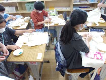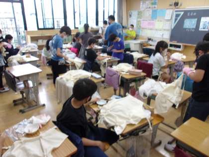 今日も6年生が藍染めの活動です。昨日とは違うクラスの子供たちが体験しています。