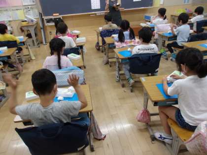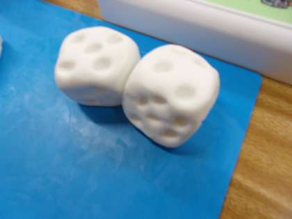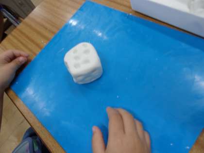 1年生が大好きな粘土を使って、サイコロを作りました。自分の手のひらをしっかり使って粘土を扱いながら、様々な大きさのサイコロが出来上がりました。