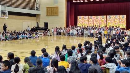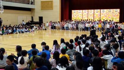 1年生から出し物として、1年生全員で歌をお礼に歌いました。