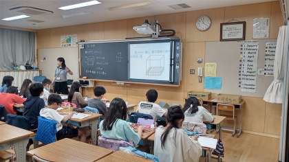 5年生の今日の単元は直方体・立方体の体積を求める公式を理解して、それを使って求める学習でした。