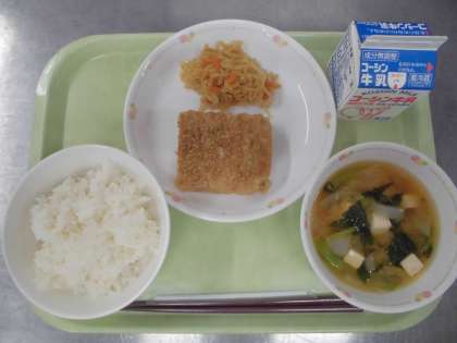ごはん 松風焼き 切り干し大根の煮物 たまねぎと豆腐の味噌汁 牛乳