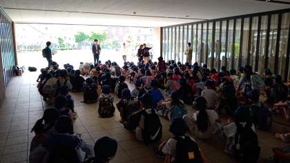 玄関に集合しました。