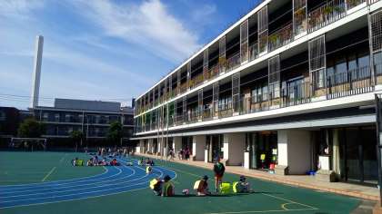 今朝はとてもよい天気になりました。子供たちも気持ちよくあいさつをしています。