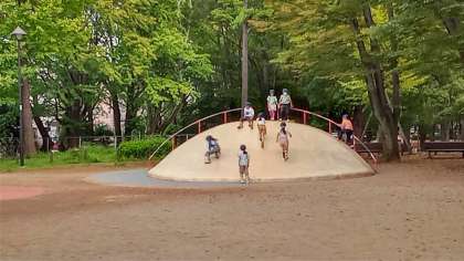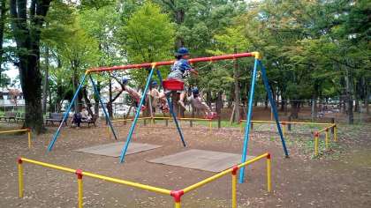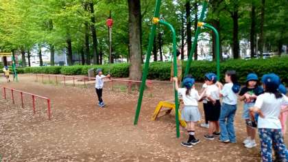 お弁当を食べた後、遊具で楽しく遊んでいます。