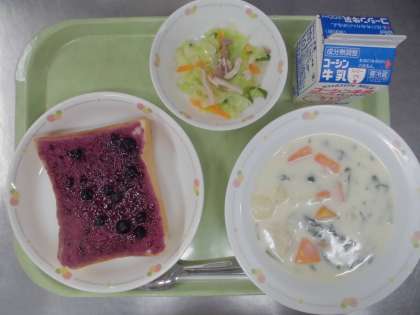 10日の給食は、目に良い食べ物をたくさん使った「目愛(アイアイ)給食」でした。