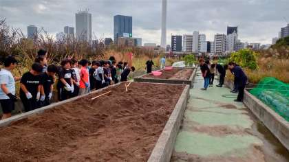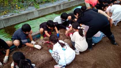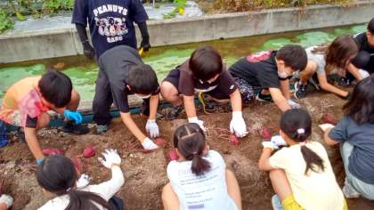 3年生は1〜4時間目に各クラスで屋上農園で育てていたさつまいもを収穫しました。今回もグリーンボランティアの皆様にお手伝いいただきました。