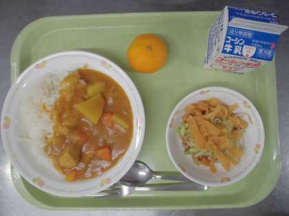今日の給食の「カレーライス)は5人、「冷凍みかん」は11人、