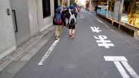 6年生が校庭でTボールの練習をしていました。校庭が雨で濡れていて少し滑りやすいこともあり、ネットに向けて打撃練習をしていました。