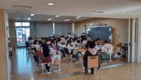 運動委員会の代表の児童が、朝礼台の上で跳んで見本を見せていました。前跳びの他に交差跳びやあや跳びを練習しました。今週からなわ跳び週間です。休み時間等を使ってたくさん跳びましょう。