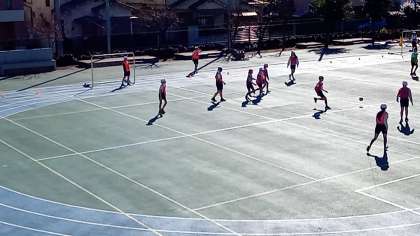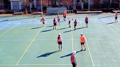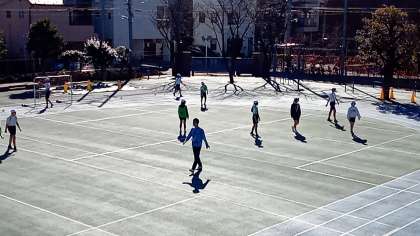 6年生が校庭でミニサッカーを行っていました。チームワークが大切です。