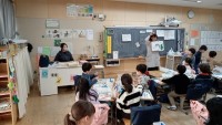 その後、校外に出て近くの横断歩道などを使って、渡り方や歩道の歩き方を練習しました。