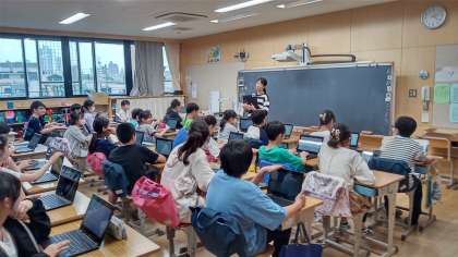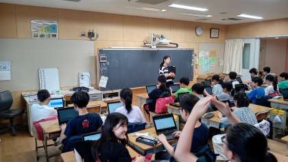 6年生が10月の学習発表会に向けて、どのような曲を演奏したいか、タブレットのアンケート機能を活用して、決めていました。