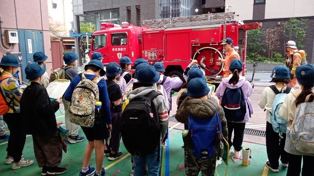 本日、社会科見学で池袋警察署と消防署に行きます。学校を出発します。