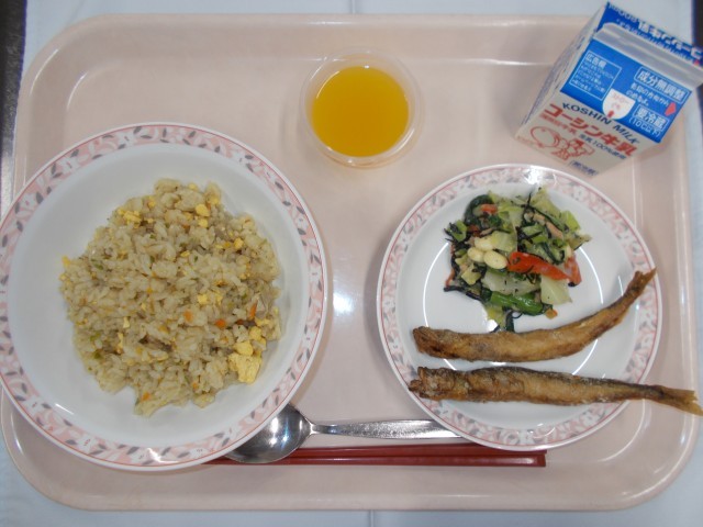 1月29日(木)の給食 公開日 2026/01/29 更新日 2026/01/29 給食・食育 ~よくかんで食べよう~ チャーハン ししゃもの唐揚げ 鉄分たっぷりサラダ オレンジゼリー 牛乳 いいね(1)