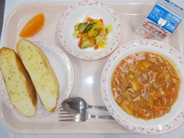 2月26日(木)の給食 公開日 2026/02/26 更新日 2026/02/26 給食・食育 ~旬の食材を食べよう~ ガーリックフランス ハンガリアンシチュー カラフルサラダ 果物(せとか) 牛乳 いいね(0)