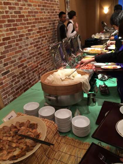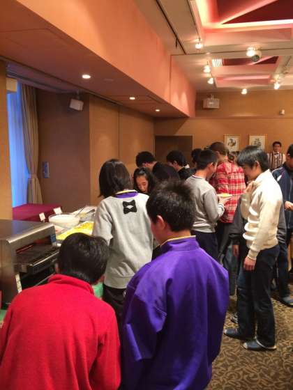 起床後、朝食中です。バイキング形式で、様々なメニューから楽しそうに選んでいます。