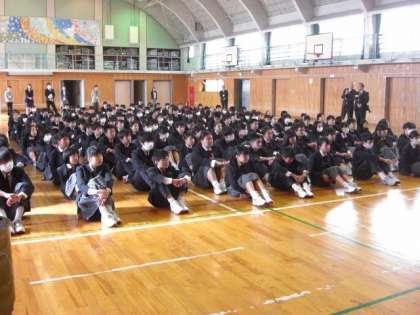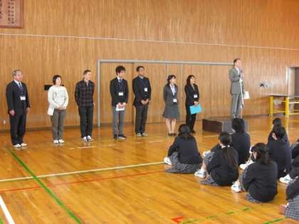 池袋中学校に新しく着任された7名の先生・主事さん方の紹介の様子です。