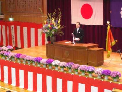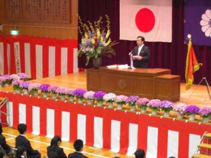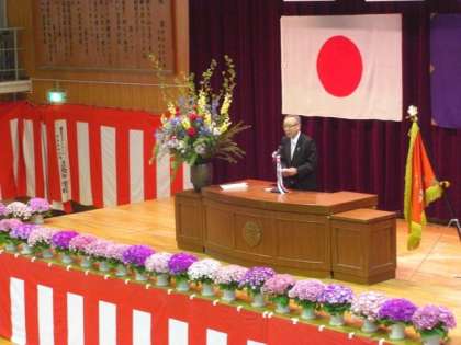 創立70周年 平成28年度入学式が行われました。校長式辞、高野区長祝辞・PTA会長祝辞の様子です。