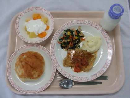 4月12日(火)の給食 公開日 2016/04/12 更新日 2016/04/12 給食・食育 献立 ・パインパン ・魚のラビゴットソース ・マッシュポテト ・ほうれん草ソテー ・フルーツヨーグルト ・牛乳 いいね(0)