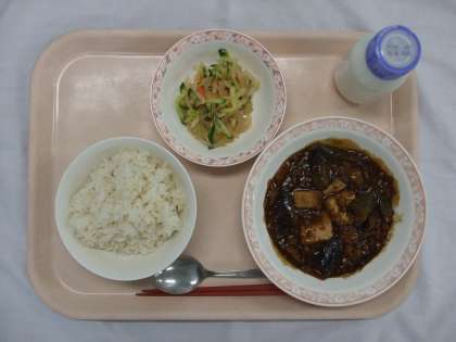 献立 ・麦入りご飯 ・麻婆茄子 ・春雨サラダ ・牛乳
