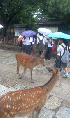 14:00 奈良公園を散策中ですが、雨が本降りになってきました。