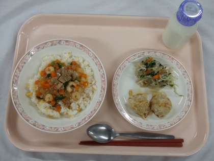 献立 ・あんかけチャーハン ・花焼売 ・塩ナムル ・牛乳
