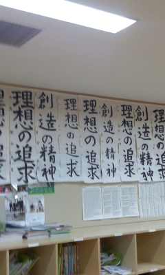 冬休み中の課題でもあった書き初めをクラスで掲示しています。