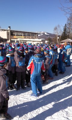 9:00 今朝の気温は−14℃でしたが、天気は快晴。今日も絶好のスキー日和です。