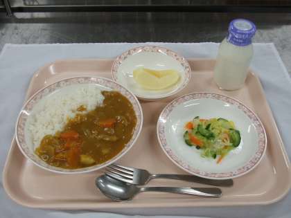 献立 ・カレーライス ・フレンチサラダ ・りんご ・牛乳