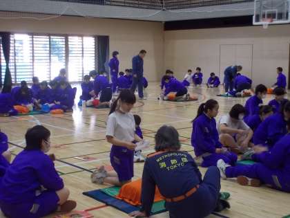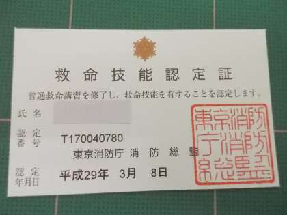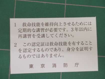 真剣な態度で、講習を受けています。講習終了後には、受講者全員に「救命技能認定証」を授与されました。