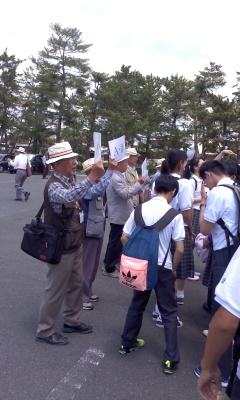 13:15 法隆寺に到着し、ガイドさんについて班ごとに見学します。