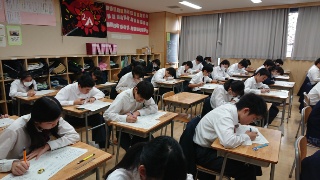期末考査二日目は理科、技術・家庭科、音楽が行われています。