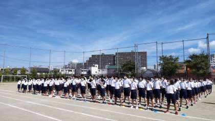 初回は整列、ラジオ体操、行進と、全員で確認すべきことが練習メニューでした